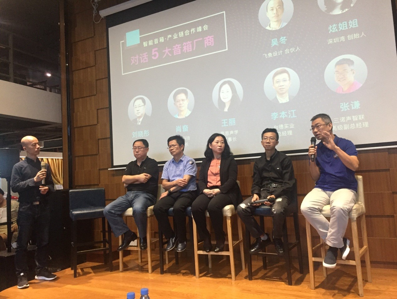 峰會(huì)現(xiàn)場(chǎnφ©™g)就(jiù)智能(néng)音(yīn)箱的(de)芯片φ•©方案和(hé)系統設計(jì)舉行(xíng)了(le)圓× 桌討(tǎo)論。張謙與超聲音(yīn)響總經理≈±(lǐ)劉曉彤、奮達科(kē)技(jì)董事(shì)長(cháng)肖奮、豪恩∞×聲學董事(shì)長(cháng)王麗(lì)、台德實"¥÷★業(yè)總經理(lǐ)李本江進行(xíng)了(le)精彩對(duì)話(huà<→♥")。叮咚音(yīn)箱 I 代産品設計(jì)顧問(wèn)、飛(fēi)魚設計(jì)合≥↕λ↓夥人(rén)吳冬擔任主持人(rén)。